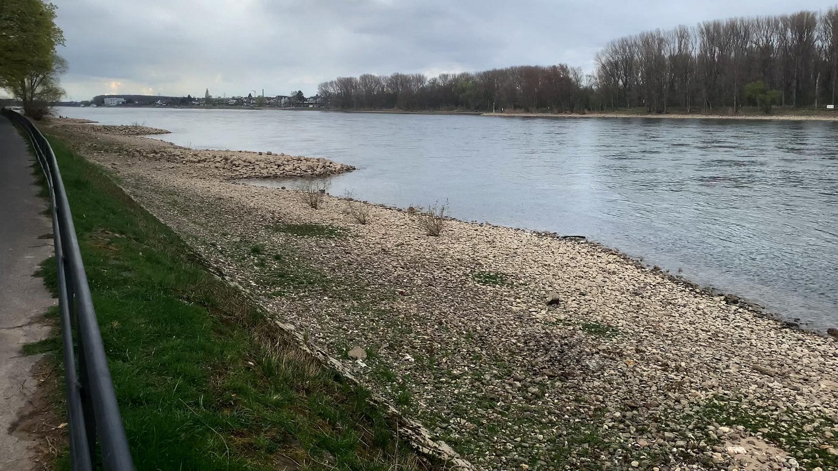 Pegelstand checken! Auf pegel.bonn.de finde ich die aktuellen Pegelstände des Rheins in Bonn. 2 Meter 8 Cemtimeter. Das ist eher Niedrigwasser als Hochwasser. Ich sollte also ein Rheinufer finden, das diesem Namen auch gerecht wird.